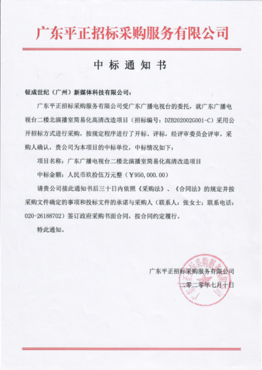 在此次“廣東(dōng)廣播電(diàn)視(shì)台Ω₽二樓北(běi)演播室簡易化(huà)高(gāo)清改造項目”招标采購(gòu)中,钲成世紀憑團隊多(★∑duō)年(nián)的(de)技(jì)術(≥♦shù)沉澱及各廠(chǎng)商的(de)大(dà)力支持,₽"§在與衆多(duō)業(yè)界知(zhī)名集成商競争中脫穎而出,成↕ε功中标該項目。在此感謝(xiè)所有(yǒu)人(rén)對(duì)我們 ←₩β一(yī)直的(de)支持和(hé)鼓勵。σ★