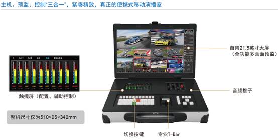 MyCaster單機(jī)集成了(le)預監屏幕、觸摸屏幕、切換控制(zhì)按鍵←¶δλ、專業(yè)T-Bar、音(yīn)頻(pín)推子(zǐ),不(bù)需要(★↓♥yào)額外(wài)的(de)監視(shì)和(hé)控制(zhì)外•☆φ(wài)設,支持标準AC電(diàn)源接口,您不(bù)必為(wèα✘↑i)忘記帶電(diàn)源适配器(qì)而煩惱§¥§了(le)!