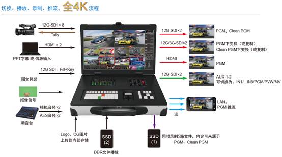 切換 、播放(fàng)、錄制(zhì)、推流,4K流程全面整合