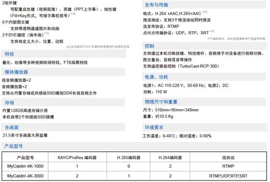 MyCaster-4K支持色域和(hé)HDR動态範圍轉換,提供更大(dà)的(de)21.5寸多(duō)畫(huà)面屏幕,讓您放(fàng)心監看(kàn)、制(®∏♠zhì)作(zuò)節目。産品自(zì)帶多(d>π♣ uō)種格式編碼器(qì),如(rú):XAVC-Intra、ProRes和(hé)H.265、H.264等,以完成現(xiàn)場(chǎng)節目的(de)高(gā₽¥o)質量錄制(zhì)和(hé)推流發布。