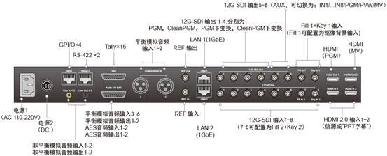 豐富的(de)視(shì)音(yīn)頻(pín)接口,支持12G-SDI、HDMI 2.0、模拟音(yīn)頻(pín)、AES數(shù)字音(yīn)頻(pín)輸入'>♥←,不(bù)僅标配HDMI和(hé)SDI PGM輸出,還(hái)配備2個(gè)Aux SDI輸出,可(kě)以切換為(wèi)PGM、Clean PGM或任意輸入信号,內(nèi)置多(duō)畫(huà)面監看(kàn)及狀态Ω 報(bào)警模塊,內(nèi)置同步發生(shēng)器(qì™★♥),直接鎖定周邊設備,幫您降低(dī)系統成本。