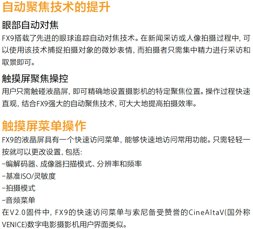 XAVC-I DCI4K 25p 模式: α∞> VBR,最大(dà)比特率 250 Mbps,MPEG-4 AVC/H<§.264